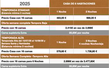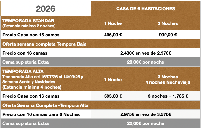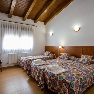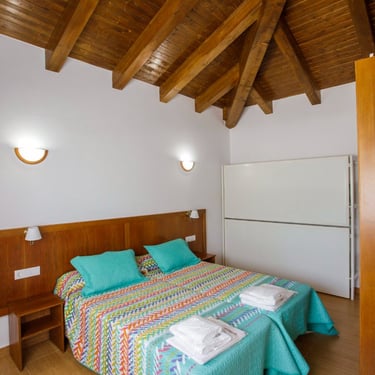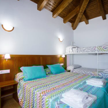Tiene seis habitaciones, 4 triples y dos dobles con camas de 0,90cm x 200cm y con posibilidad de camas supletorias