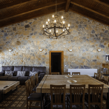 Es una hermosa casa con fachada de piedra y cubierta de madera con un Amplio salón con chimenea y calefacción en toda la casa.