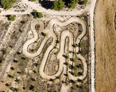 Disfruta de nuestro circuito con los niños o déjalos que se paseen y vayan cogiendo habilidades en nuestro circuito de tierra con un trazado muy simple para mayor disfrute y seguridad.