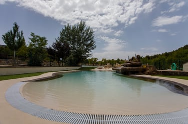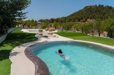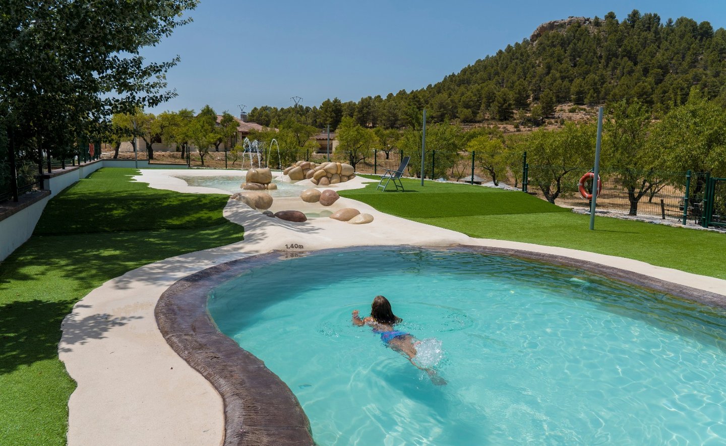 Disfruta de un baño seguro en nuestra piscina en forma de playa con una PROFUNDIDAD MÁXIMA DE 1,40M, JACUZZI Y PARA LOS MÁS PEQUEÑOS UNA PISCINA INFANTIL CON TOBOGANES Y 0´30M DE PROFUNDIDAD PARA UNA MAYOR SEGURIDAD Y TRANQUILIDAD PARA LOS PADRES.